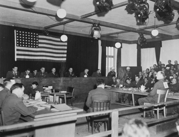 Otto Förschner als Angeklagter im Dachau-Hauptprozess 1945. Quelle: United States Holocaust Memorial Museum (USHMM), Washington.