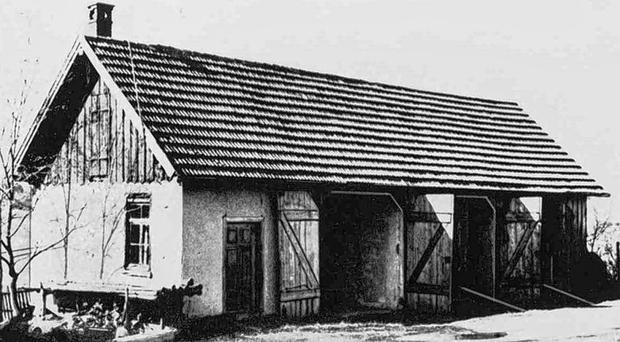 In diesem ehemaligen Schuppen auf dem Anstaltsgelände von Grafeneck wurde im Oktober 1939 der Vergasungsraum installiert. Im Januar 1940 begannen dort die Tötungen im Rahmen der Aktion T4. Das Gebäude wurde auf Veranlassung der Samariterstiftung im Jahr 1965 spurlos abgetragen und durch neue landwirtschaftliche Gebäude ersetzt. Fotografie: Gedenkstätte Grafeneck