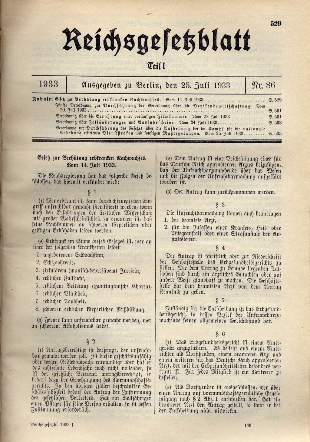 Der Wortlaut des "Gesetzes zur Verhütung erbkranken Nachwuchses" (1.1.1934)