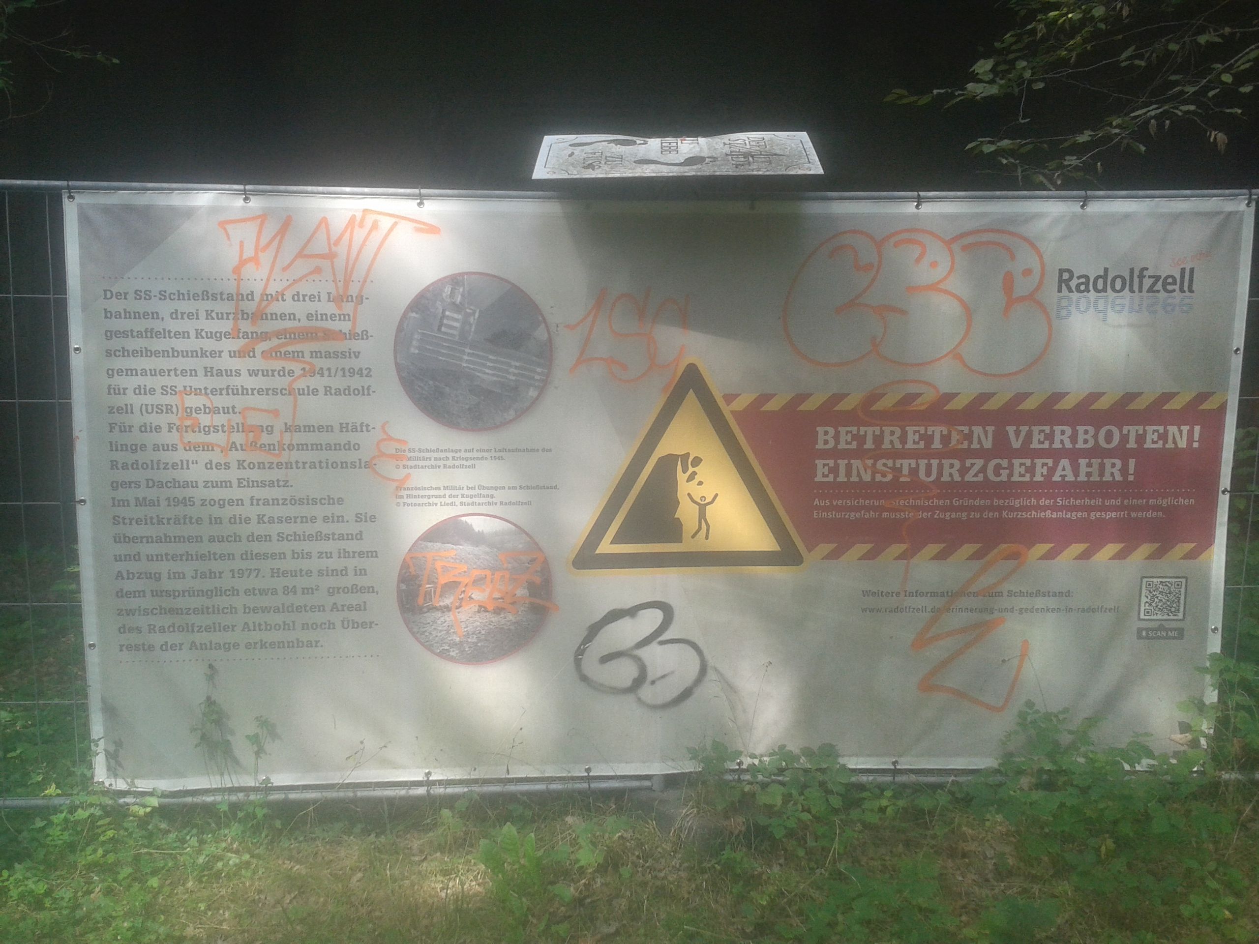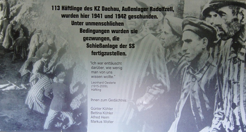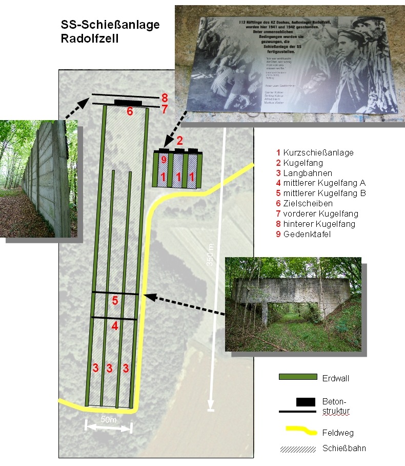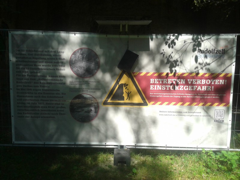 Der im Nordosten von Radolfzell gelegene ehemalige SS-Schießstand wurde in den Jahren 1941 und 1942 unter Einsatz von 120 KZ-Häftlingen aus Dachau fertiggestellt. Er wurde in der Folge von Waffen-SS-Einheiten der Radolfzeller Unterführerschule für das Erlernen ihres mörderischen Handwerks genutzt.