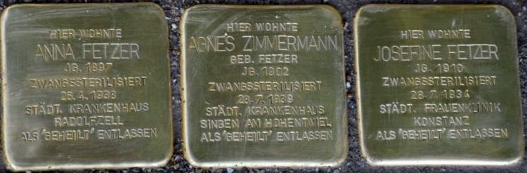 Stolpersteine für Josefine Fetzer, Anna Fetzer, Agnes Zimmermann, geb. Fetzer. Ekkehardstr. 16, Radolfzell.