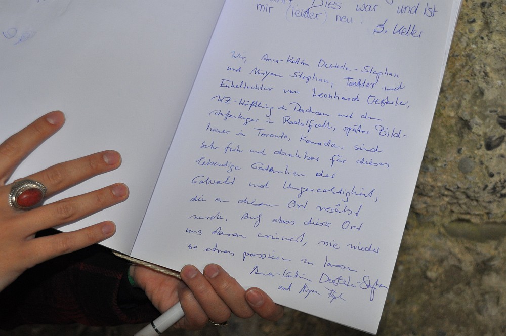 Eintrag ins Gedenkbuch durch Frau Anna-Katrin Oesterle-Stephan, Tochter von Leonhard Oesterle, und Miryam Stephan, seiner Enkelin, am 17. November 2012
