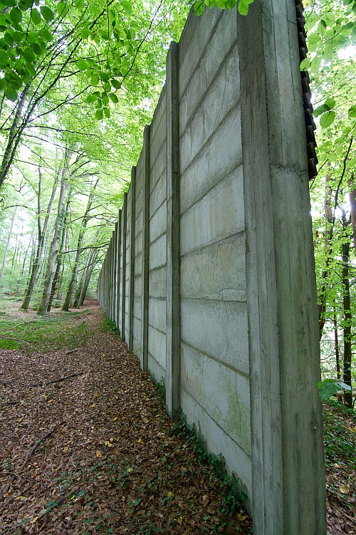 Fangwand am Abschlusswall oberhalb der drei Langbahnen (Blick nach Osten):