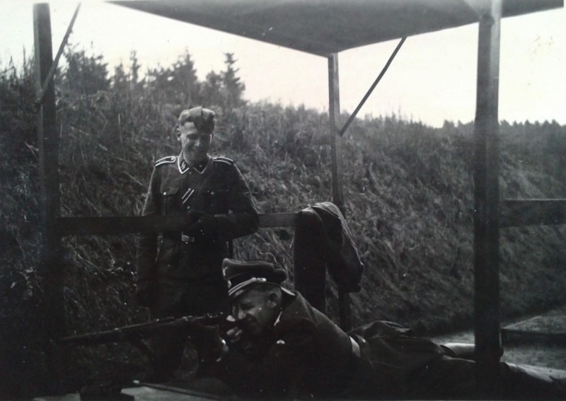Schießübungen der USR, Kurz- und Langbahn am Schießstand, Winter 1942/43. Im oberen Bild zu erkennen: das von der SS vor ihrem Abzug 1945 gesprengte Wach- und Munitionshaus östlich der Kurzbahnen. Fotografie Werner Maybauer. Fotoarchiv Markus Wolter.