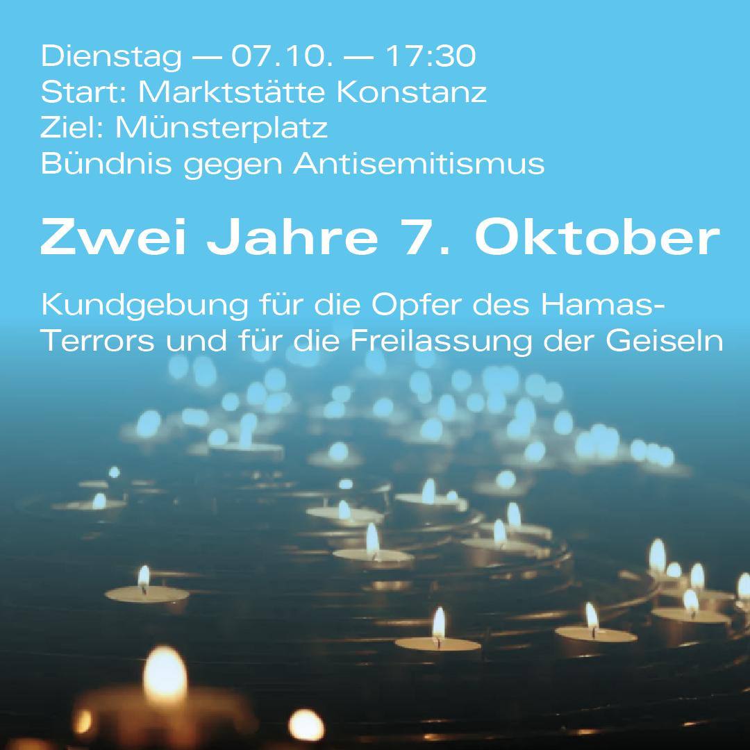 Zwei Jahre 7. Oktober Blog post actions Drucken SW Samstag September 27, 2025 Kundgebung für die Opfer des HAMAS-Terrors und für die Freilassung der Geiseln Organisiert vom Bündnis gegen Antisemitismus